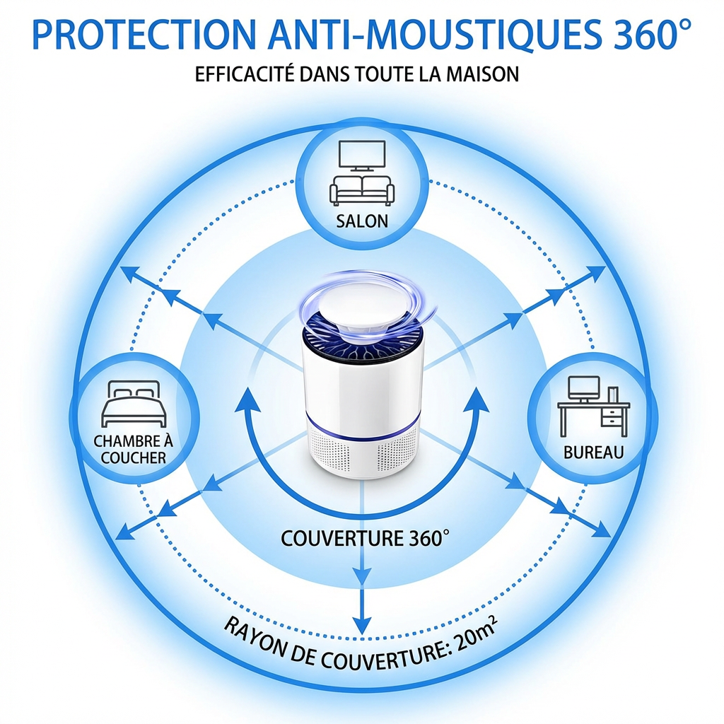 Aucune installation compliquée : branchez simplement la lampe et laissez-la agir. Son fonctionnement silencieux vous assure une utilisation discrète, même pendant le sommeil. C’est la solution parfaite pour éliminer les moustiques sans contrainte au quotidien.