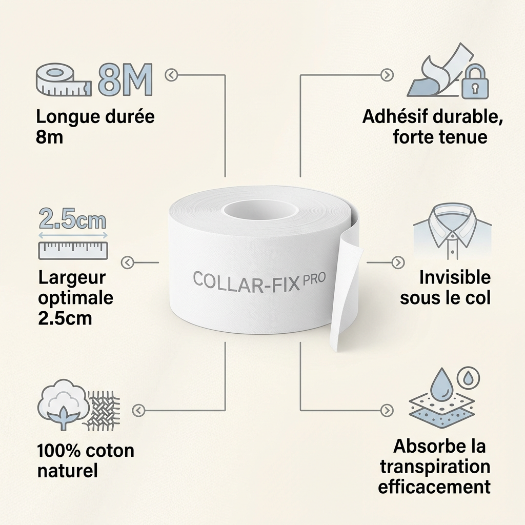 Honnêtement, j'étais sceptique au début. Mais avec la chaleur du Plateau ici, mes cols de chemise devenaient noirs dès 11h. Depuis que j'utilise ce ruban de 8m, mes chemises restent fraîches jusqu'au soir. C'est le secret des cadres, je vous assure.